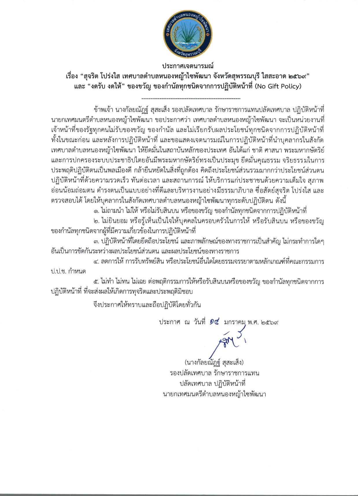 งดรับ งดให้ ของขวัญ ของกำนัล และไม่เรียกรับผลประโยชน์ทุกชนิดจากการปฏิบัติหน้าที่